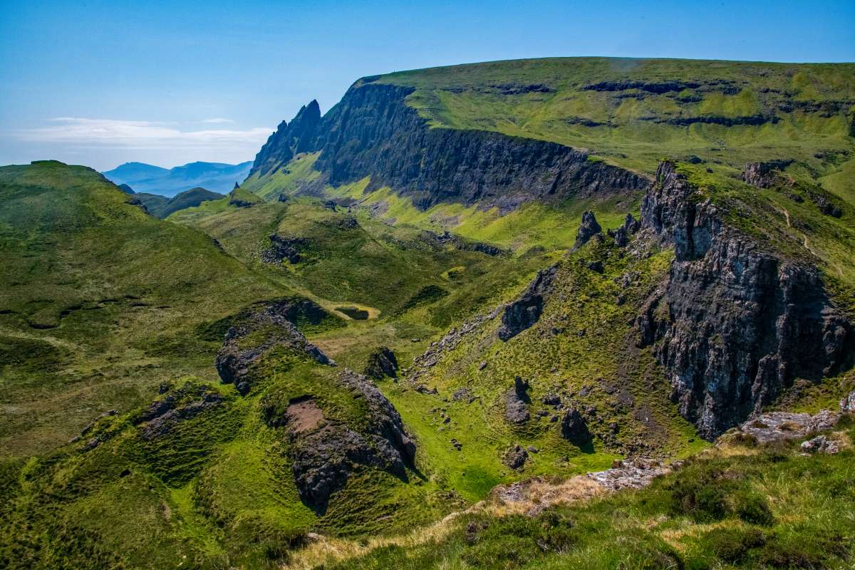 Quiraing was formed by an ancient landslip that left behind an area of bizarre rock formations. It’s situated on the northernmost part of the Trotternish Ridge on the Isle of Skye. Quiraing is very popular due to its breathtaking and dramatic scenery and is one of the best hikes on Skye!!The start of the hike can be easily accessed by a scenic drive along the Quiraing Pass but can sometimes be very busy. Many people only go to see the labyrinth of huge blocks though it’s well worth walking around the whole hill circuit and returning above the escarpment.